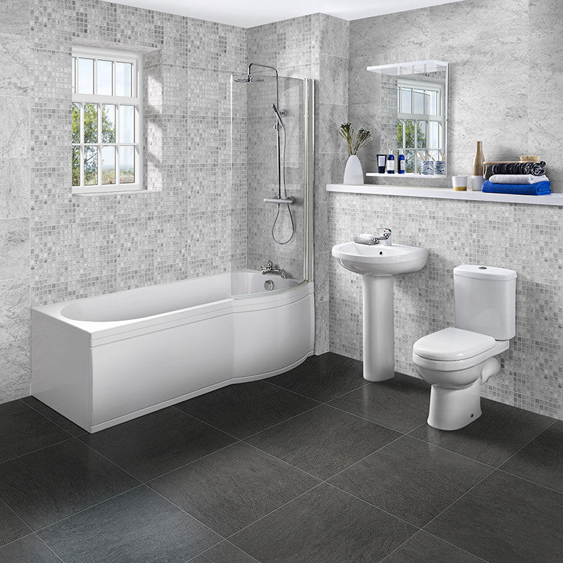 Right Handed P Shaped Shower Baths Bathroom Suite