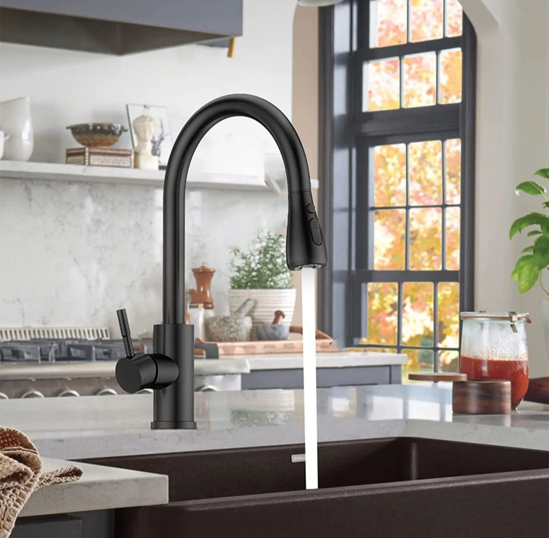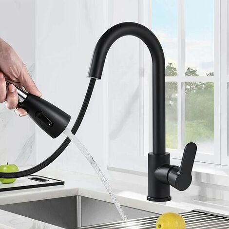 Kitchen Sink Mixer Taps Pull Out Spout Spray Single Lever - Matt Black