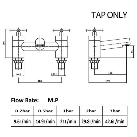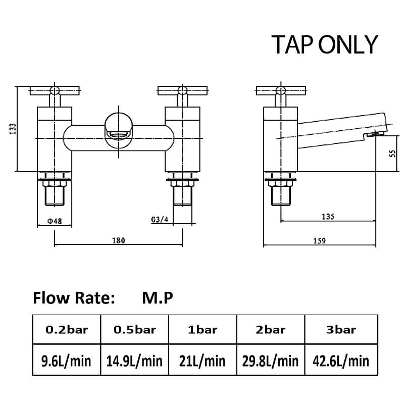 - Spout reach: 135mm