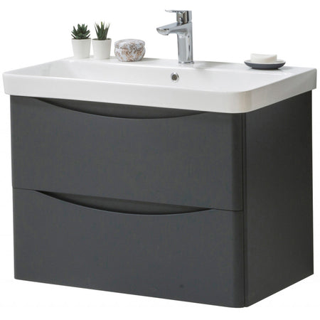 Arezzo Wall Hung 2 Drawer Unit & Ceramic Basin 800mm Matt Graphite