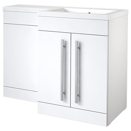 Milan 2 Door White Gloss L-Shaped Basin & Toilet Bathroom Unit - Left/Right Hand